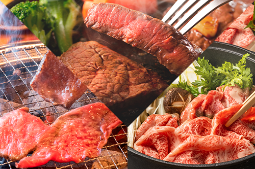 お好みでステーキ、しゃぶしゃぶ・すき焼き、焼肉の3種類から選べます。